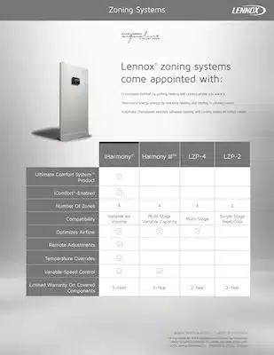 Lennox® zoning systems come appointed with customized comfort for your needs. So, no matter which zoning system you choose, you’ll enjoy year-round energy savings. Click to download our current Lennox zoning systems comparison card to see which would be the right fit for your home.